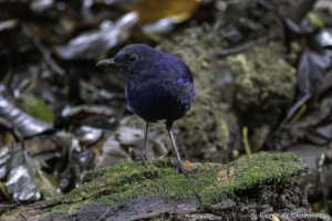 Right : Javan whistling-thrush (Myophonus glaucinus) in Gunung Gede forest.