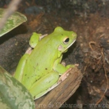 Adults can reach up to 14 cm in length, females being larger than males. Large toe pads on all feet. Coloration is usually bright green (although brown has been reported). Conspicuous white stripe on lower lip, whitish belly.