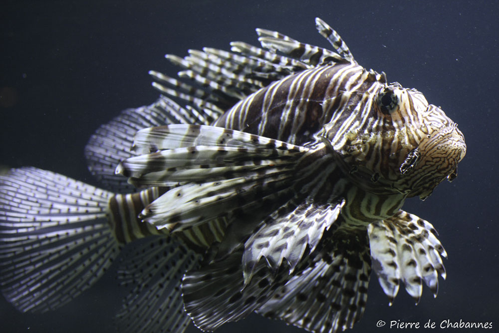 The species is a hybrid between the Indian-Ocean based P. miles and the Pacific ocean based P. russelli. Initially found from Sumatra to Marquesas islands, south Japan to Australia. Introduced in the Caribbean area and Mediterranean Sea. Lives in lagoons and seaward reefs, also turbid waters, down to 50 meters deep.